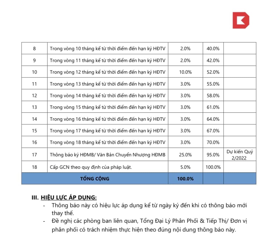 - Thời gian bàn giao:Quý II/2022