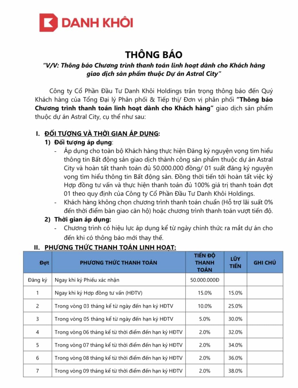 - 11 PHƯƠNG THỨC THANH TOÁN DỰ ÁN CĂN HỘ ASTRAL CITY BÌNH DƯƠNG