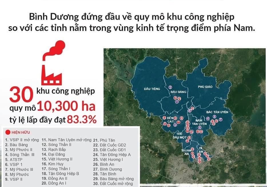 Các khu công ngiệp lớn xung quanh như KCN VSIP, KCN Việt Hương, KCN Sóng Thần, KCN Đồng An…
