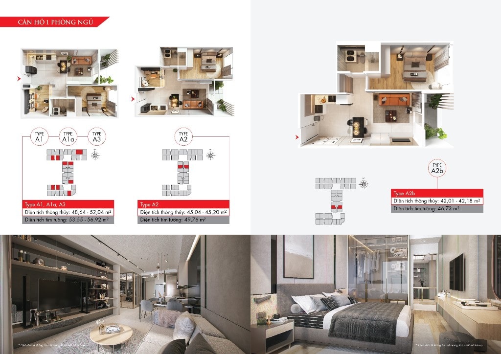 1 phòng ngủ ( 45-55m2), 2 phòng ngủ ( 55-70m2), 3 phòng ngủ (80-90m2) |