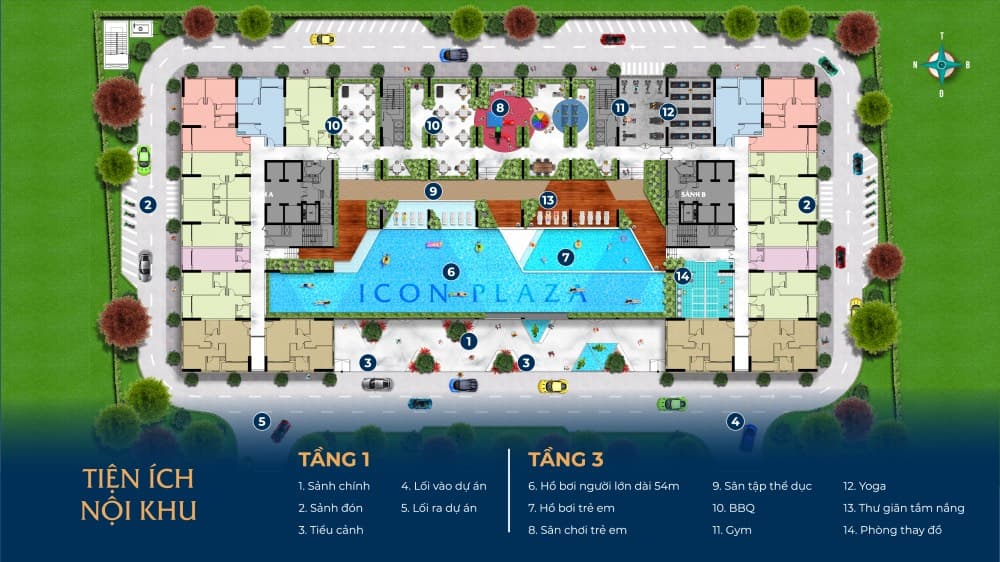 Icon Plaza được xây dựng và tích hợp All in One tiện ích công cộng cho cư dân như Hồ bơi, khu vui chơi trẻ em, trường mẫu giáo, sân tennis, , khu công viên, khu sinh hoạt ngoài trời, tiệc nướng BBQ,, café sân vườn treo Babylon kiểư Hy Lạp, phòng tập gym Cali và rất nhiều tiện ích khác.