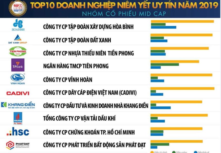 Top 10 Doanh nghiệp niêm yết uy tín 2019 (nhóm Mid Cap).