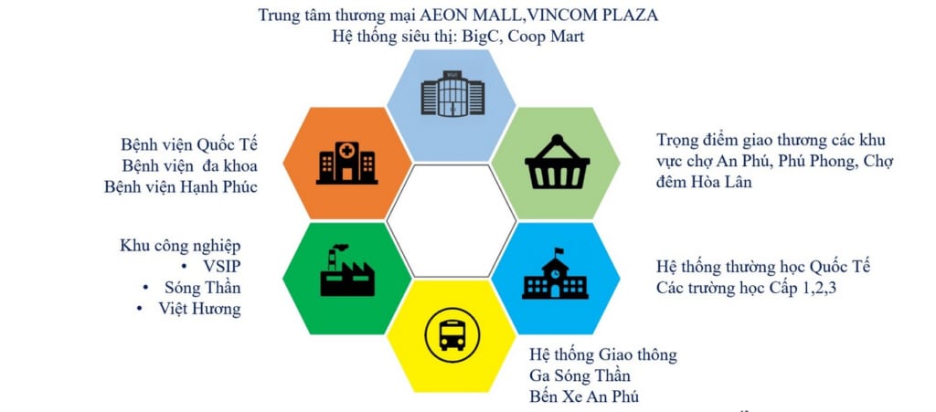 Với vị trí đắc địa ngay vòng xoay An Phú chủ đầu tư cho xây dựng một loại hình căn hộ thương mại kết hợp với căn hộ chung cư, tại Bình Dương đây là một mô hình hot đối với người dân tại đây. Có loại hình thương mại thì khả năng sinh lời trong tương lai cao. Liền kề với khu công nghiệp VSIP và dân cư lâu đời tại Bình Dương.