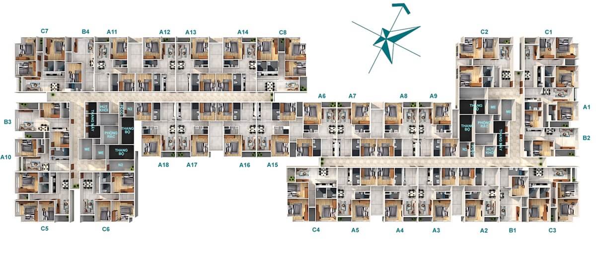 Đây là không gian mang đến sự thông thoáng ánh sáng và bầu không khí thiên nhiên vào trong mỗi căn hộ. Thiết kế căn hộ được tối ưu hóa giúp cho chủ nhân có thể tận dụng tối đa không gian sống.