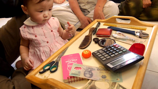 Ngoài chuẩn bị đồ cúng thôi nôi thì còn một nghi thức rất đặc biệt bố mẹ nhất định phải chuẩn bị cho con là lễ chọn nghề và mừng tuổi. Theo người xưa thì nghi lễ này thể hiện mong muốn về nghề nghiệp của con trong tương lai. Nghi thức sẽ được thực hiện như sau: