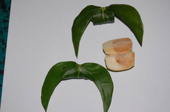 - Đầu tiên Gấp đôi lá trầu lại, sau đó cắt xéo theo đường gân lá trầu.