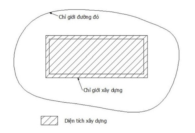 Phần được gạch chéo đó chính là phần đất mà bạn được phép xây dựng công trình. Tuy nhiên, khoảng cách từ chỉ giới đường đỏ đến đất xây dựng tùy thuộc vào độ cao của công trình như chúng tôi đã nhắc đến ở trên.
