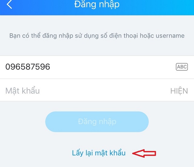 Bước 1: lấy lại mật khẩu Zalo