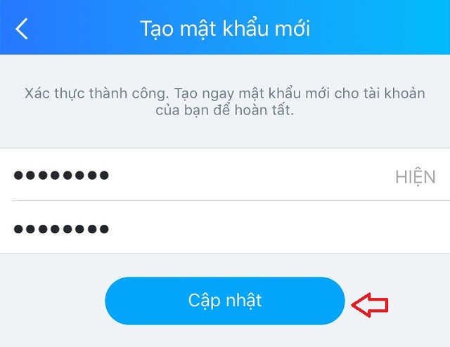 Bước 3:Tạo mật khẩu Zalo mới
