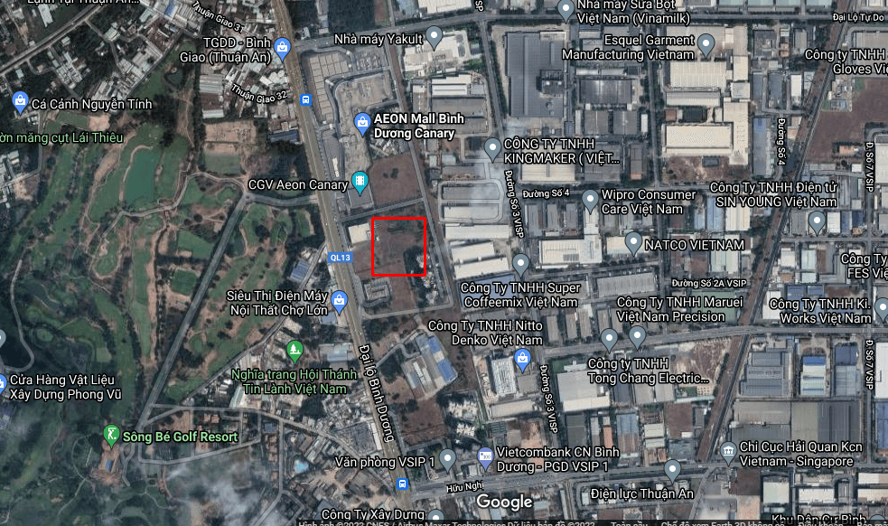 Liền kề siêu thị nhật bản AEON MALL Bình Dương Canary , đối diện Sông Bé Golf