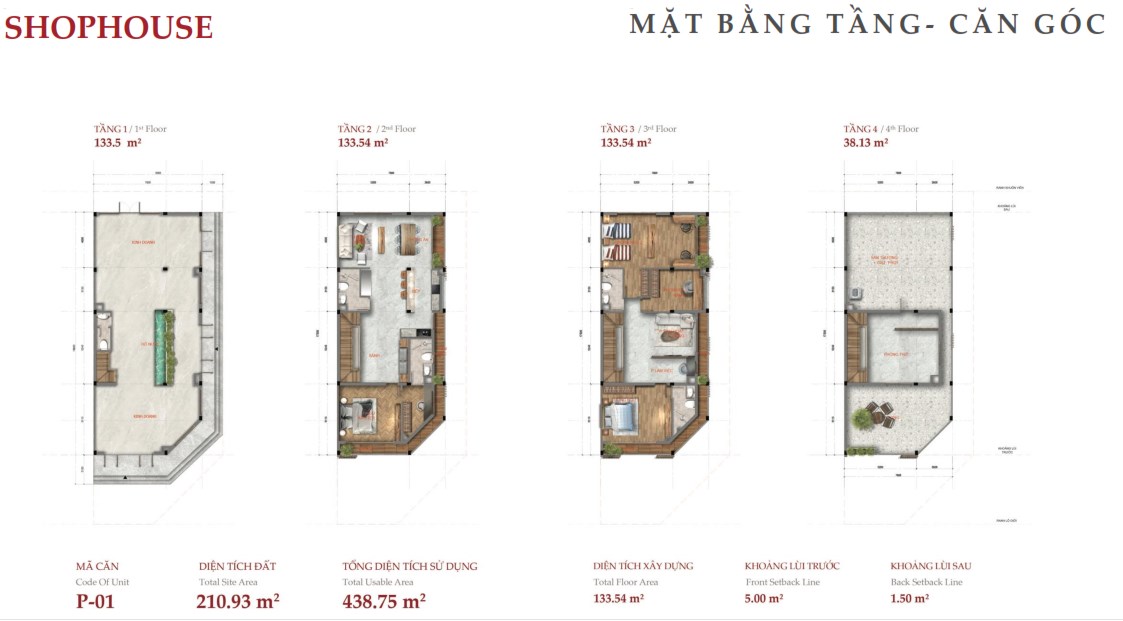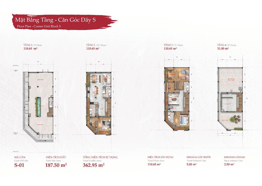 Mặt bằng tầng chi tiết nhà phố Takara căn góc: