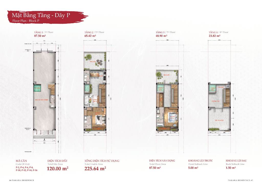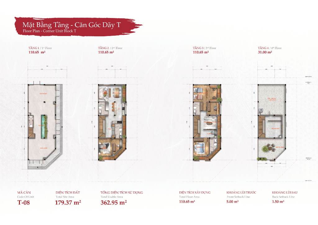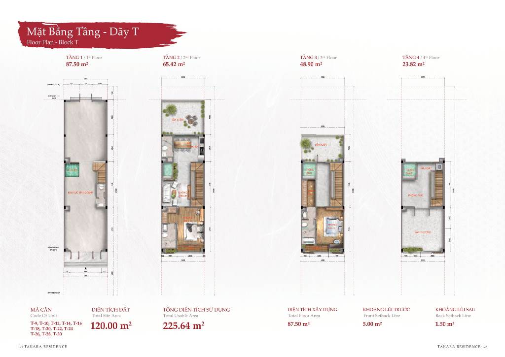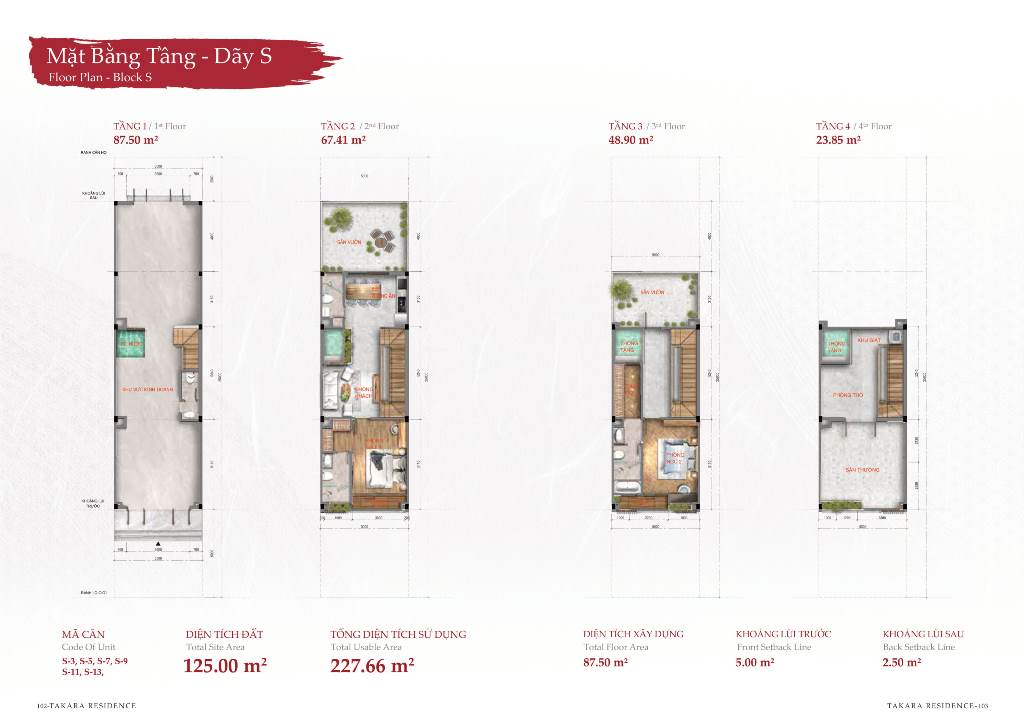 Mặt bằng tầng chi tiết townhouse Takara residence