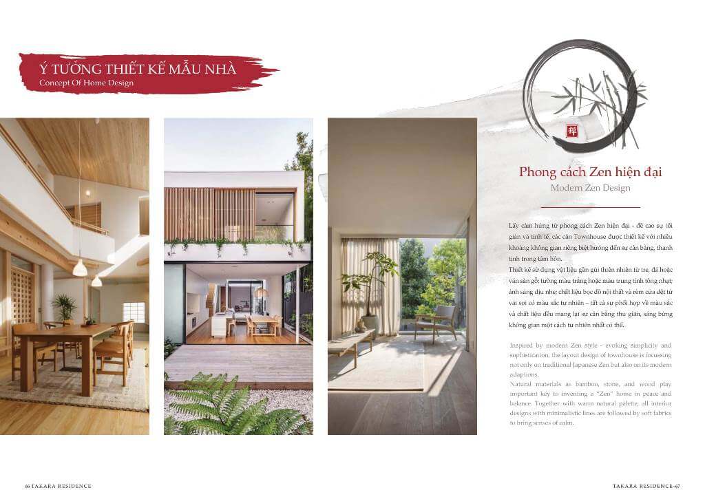 Takara Residence Bình Dương được thiết kế mang phong cách Nhật Bản độc đáo và ấn tượng theo phong cách Zen hiện đại. Ý tưởng thiết kế mẫu nhà phố được các kiến trúc sư Nhật Bản phác họa hết sức sáng tạo và độc đáo