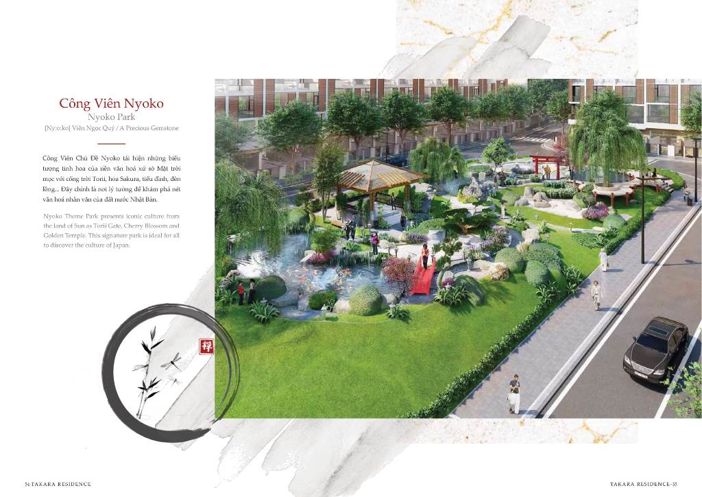 Takara Residence được quy hoạch các tuyến đường nội khu độc đáo theo phong cách chuẩn Tokyo Nhật Bản. Mỗi con đường đại diện cho một loài hoa khoe sắc góp phần tô điểm cuộc sống cho cư dân tại các dãy nhà phố