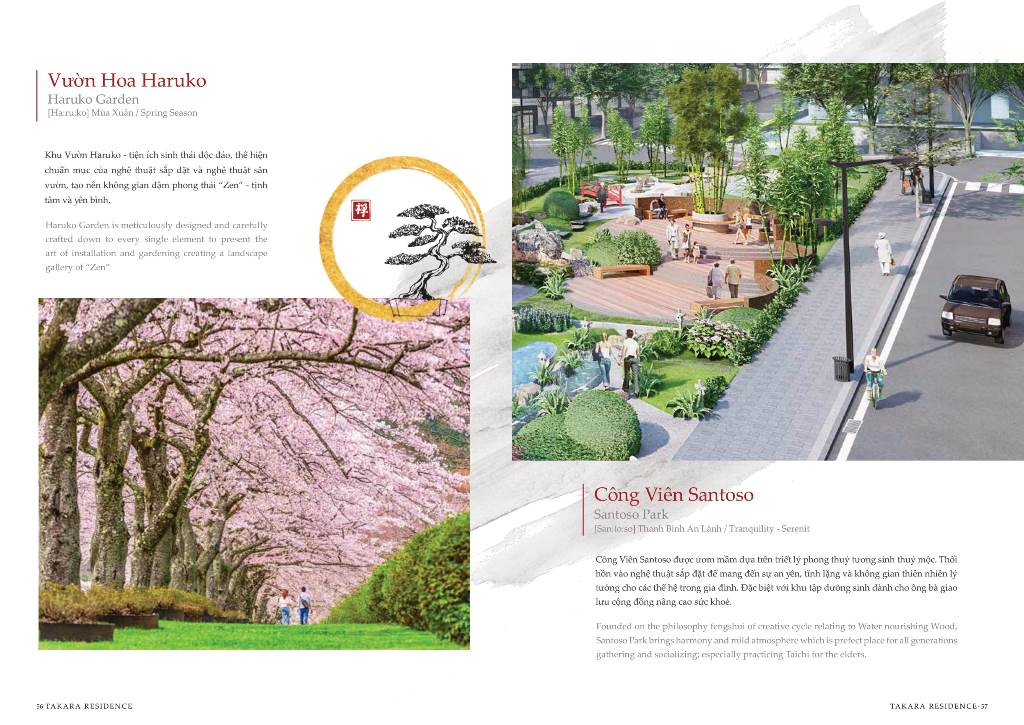 Xen kẽ các khu nhà phố, biệt thự và căn hộ chung cư mang phong cách Nhật Bản là các tiện ích chuẩn 5 sao mà chủ đầu tư Takara Residence dành cho cư dân. Có thể kể đến các tiện ích :