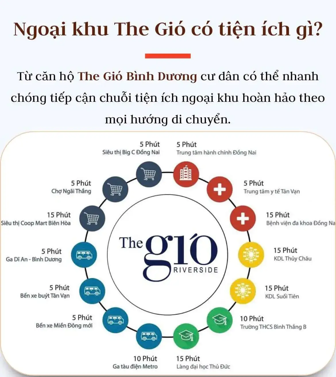 Trở thành cư dân của The Gió, khách hàng được thừa hưởng tất cả những tiện ích xung quanh dự án. Từ đây cư dân tương lai có thể dễ dàng kết nối với các khu vực xung quanh thông qua nhiều hướng di chuyển thuận lợi .Từ The Gió Riverside An Gia có thể dễ dàng di chuyển đến TP Thủ Đức, quận Gò Vấp, quận Bình Thạnh, sân bay Tân Sơn Nhất qua tuyến đường Vành Đai 3, quốc lộ 1A và Phạm Văn