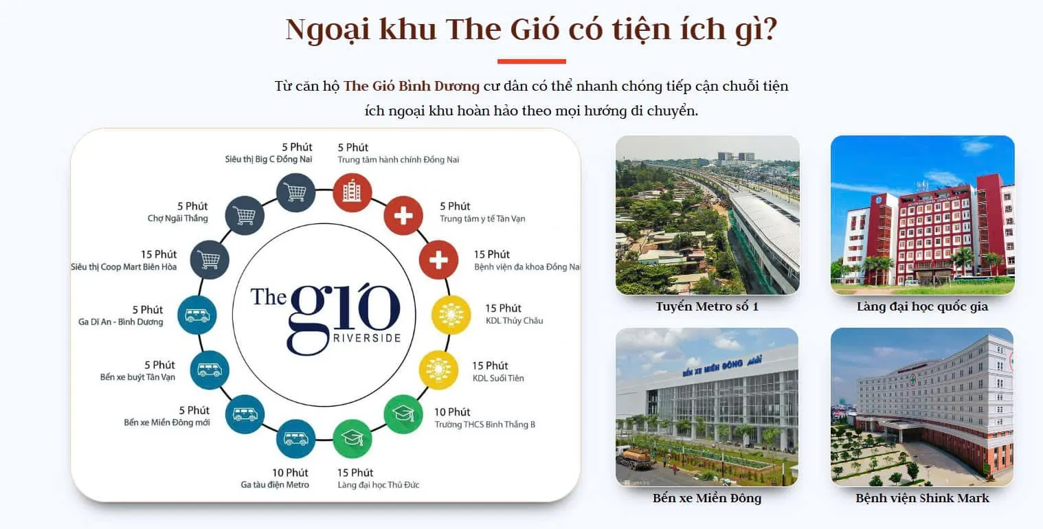 - The Gió Riverside thừa hưởng nhiều tuyến đường giao thông quan trọng thuận lợi kết nối giao thương liên vùng đặc biệt Tuyến Metro số 1 và nhiều hạ tầng khu Đông khác; dự án sở hữu view sông cực đẹp